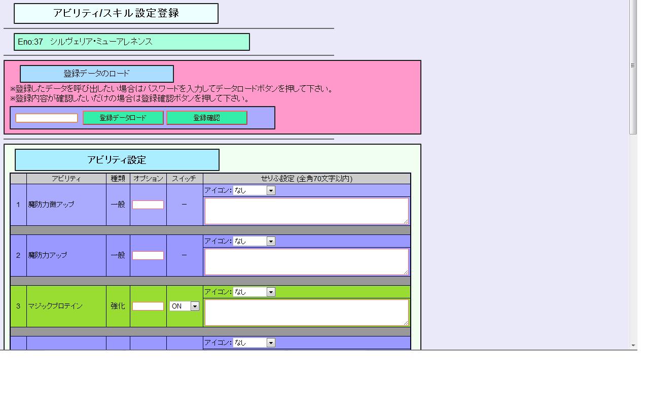 以上がアビリティ/スキル設定の説明になります。